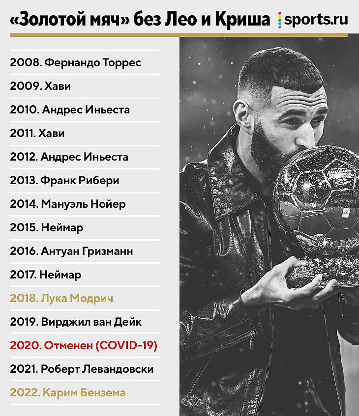 • Пункт, который не понравится Вадиму Лукомскому: даже в альтернативной вселенной без Месси и Роналду у Кевина Де Брюйне только бронза (в 2022-м).