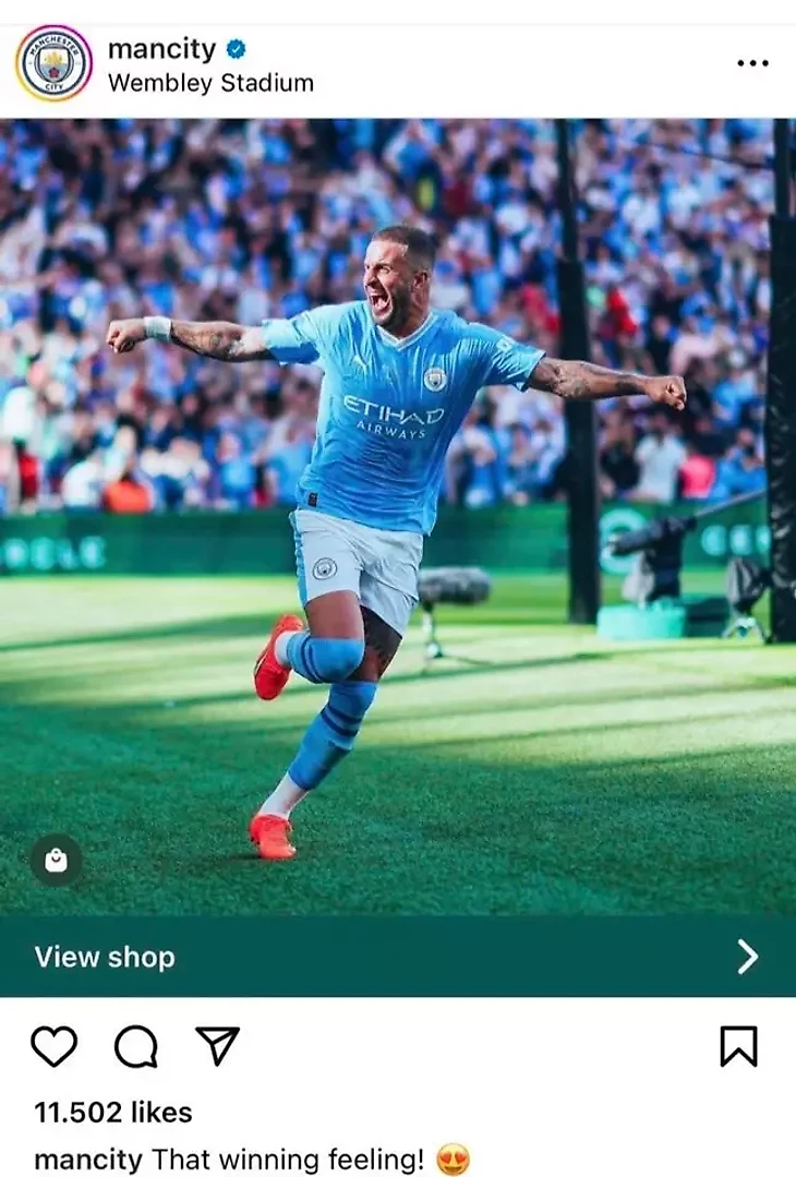 Чемпионы АПЛ вели в счете после того, как молодой Коул Палмер забил на 77-й минуте, и вскоре после этого в инстаграме «Сити» появилось фото Кайла Уокера, коротко подписанное: «Это чувство победы».