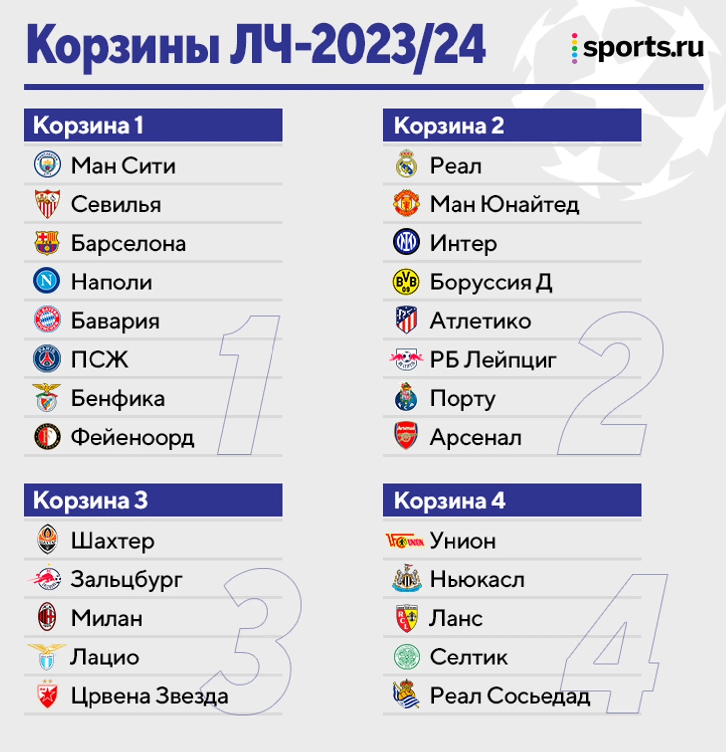 Все участники Лиги Чемпионов 2023-2024