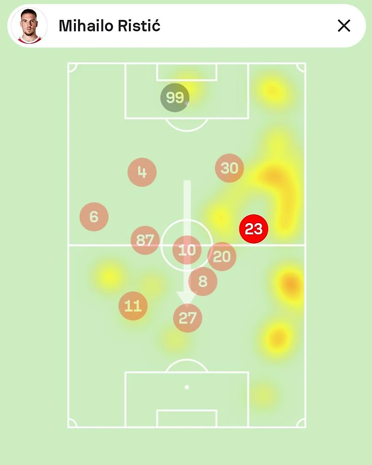 Как видно из скриншота, защитник добротно выжигал свой правый фланг, отыграл весь матч без замен, собрал клиншит, но в атакующих действиях провел достаточно блеклый матч, что показывает его статистика передач. В целом как пик мне кажется достаточно блеклым, тем более за такую цену.
