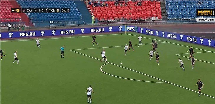 Однако ауты «Тюмени» у чужой штрафной площади таят для соперников реальную опасность, когда игроки тюменцев оперативно открываются как под вброс аута, так и под последующую передачу.