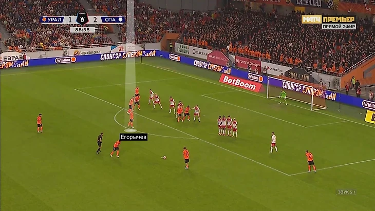 «Спартак» никого не оставил на подборе. Егорычев пробил с линии штрафной – к нему с опозданием выбросился только Мартинс, который вообще стоял в стенке.