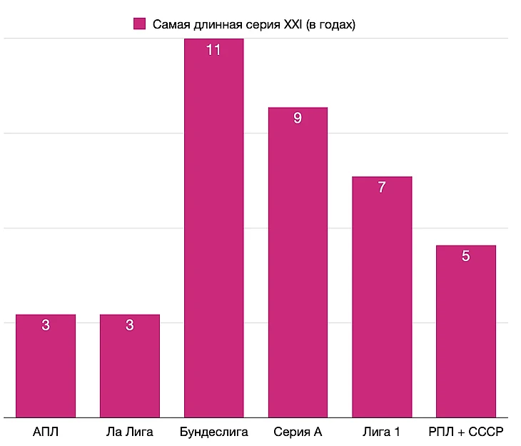 Самая длинная серия чемпионств в XXI веке: 7 лет