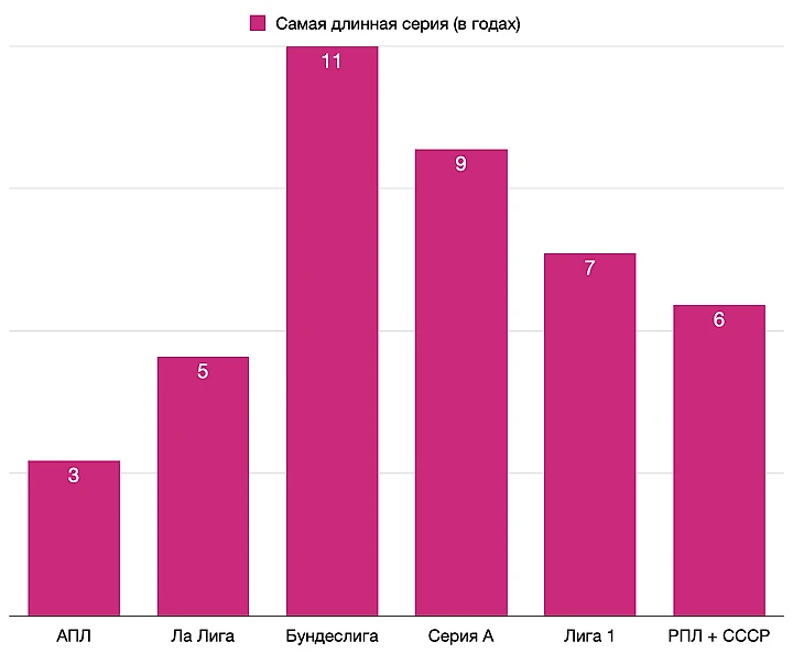 Самая длинная серия чемпионств в XXI веке: 11 лет