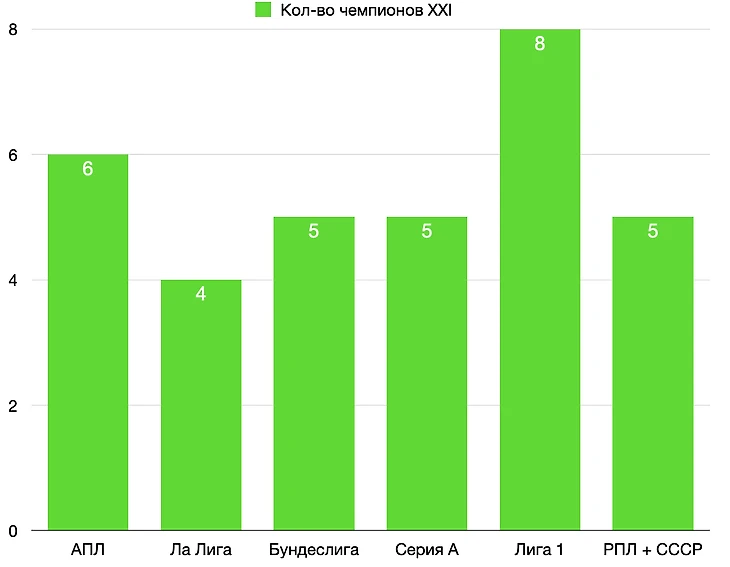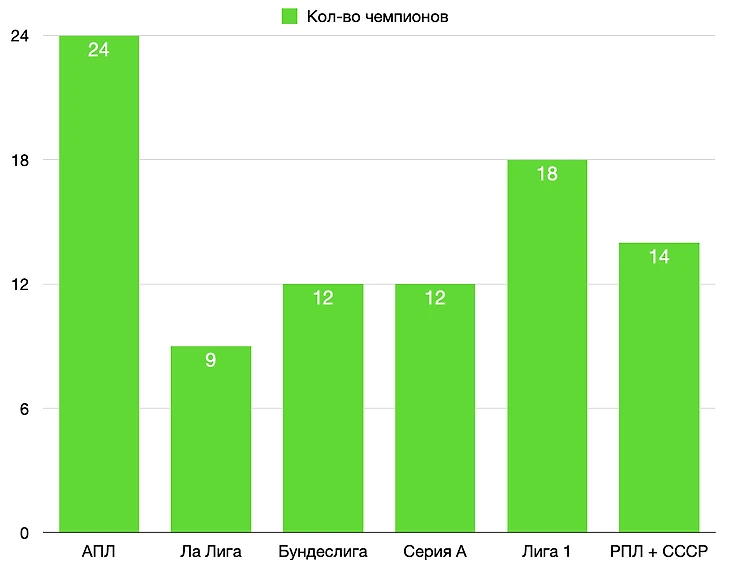 Исследование: как обстоят дела с чемпионской конкуренцией в топ-лигах и РПЛ? Где самый интересный чемпионат?