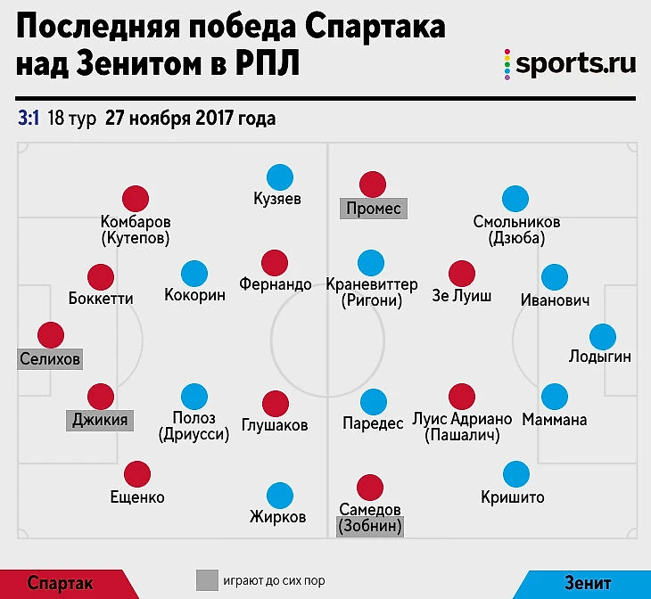 Из тех стартовых составов только четверо не сменили клуб, все – из «Спартака»