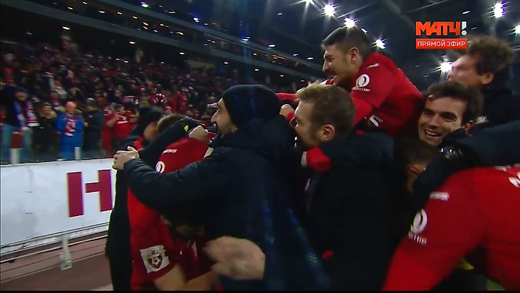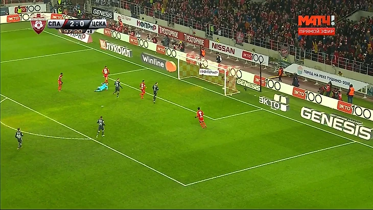 Через несколько минут «Спартак» забил уже правильный мяч. Но что удивительно – на месте центрального нападающего головой подправил Самедов.