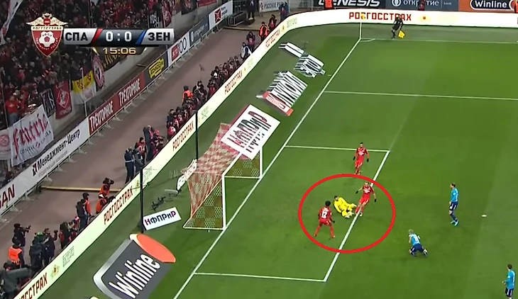 И уж точно тут – когда по направлению к Адриано ковырнул мяч Глушаков.