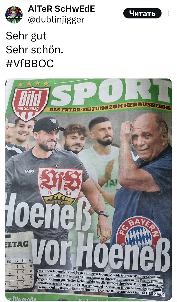 Заголовок на первой полосе газеты BILD Sport гласит: «Хенес перед Хенесом», – что является прямой отсылкой к итоговой таблице после 1-го тура.