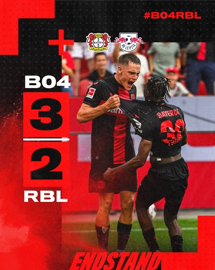 Вторая подряд домашняя победа «Байера» над «Лейпцигом», но с достаточно разным рисунком игры. В апреле (2:0) леверкузенцам пришлось после перерыва выстроить двухэтажный автобус, чтобы сберечь 3 очка (3:17 по ударам). Сейчас матч оказался более равным, и были все шансы, что он завершится вничью. Этого, правда, совсем не предвещал первый тайм. Еще до перерыва «Байер» повел в два мяча, но этому здорово помог сам «Лейпциг». Сначала Орбан и Симакан оставили без опеки на линии вратарской Джереми Фримпонга – 1:0. А после и Джонатан Та без сопротивления пробил после углового. Интрига возродилась спустя 4 минуты – очередной корнер принес гол уже «Ред Буллу». Отличился Дани Ольмо – 2:1. Всего неделю назад «быки» в Суперкубке разгромили «Баварию» – 3:0. А в середине встречи с «Байером» пришлось уже им доставать третий мяч из своих ворот. Снова не обошлось без Фримпонга, который пронесся по правому флангу и отпасовал в штрафную на Вирца. Главная «звездочка» «аспириновых» не подвела, отправив элегантный «черпачок» за спину Бласвиха – 3:1. Перевес в два мяча не избавил «Байер» от нервной концовки. Все благодаря Опенда, который впервые отличился в Бундеслиге после перехода из «Ланса». На стороне «Лейпцига» снова сыграли стандарты – Лои после штрафного воплотил в гол передачу Симакана – 3:2. Еще через две минуты зрители этого матча должны были увидеть шестой гол. Все тот же Опенда не смог пробить по пустым воротам, а все же разобравшись с мячом, пробил в штангу. Это был самый верный шанс на ничью для гостей, но из Леверкузена «Лейпциг» уехал ни с чем. «Байер» стартует с эффектной победы.