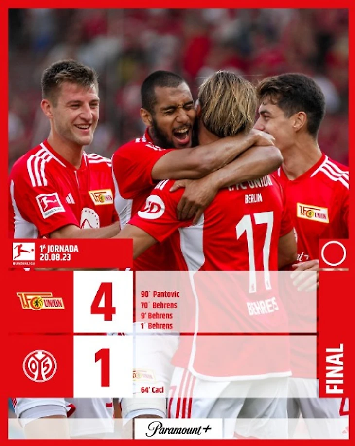 В довершение всех бед «Майнца» на исходе компенсированного времени берлинская команда убежала в контратаку. Милош Пантович легко обыграл голкипера и поразил пустые ворота. 4:1 – «Унион» мощно начинает сезон.