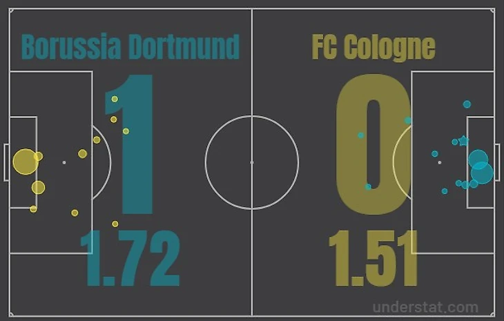 5. Дортмундцы нанесли девять ударов по воротам соперника, на счету «Кельна» ― семь ударов. Хозяева доминировали во владении, мяч был у футболистов «Боруссии» 67% времени.
