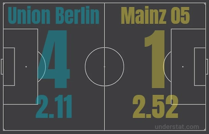 1. В матчах Бундеслиги против «Майнца» «Унион» зафиксировал наибольшее количество голов;