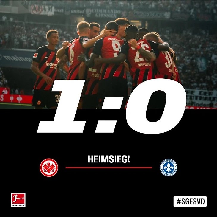 Гессенское дерби между «Айнтрахтом» и «Дармштадтом» в Бундеслиге состоялось впервые с сезона 2016/17! Но вопреки яркой вывеске матч получился не очень богатым на события. «Айнтрахт» доминировал с первых минут, но опасных моментов у ворот «лилий» было не так много – гости уверенно оборонялись. К тому же, уже на 6 минуте капитан Себастьян Роде был заменен из-за травмы. Открыть счет «орлы» смогли только под конец тайма – на 40 минуте отличился Рандаль Коло Муани после голевого паса Филиппа Макса. В начале второго тайма «Дармштадт» действовал более опасно и сделал парочку неплохих моментов у ворот Кевина Траппа. Пожалуй, самый опасный момент у гостей был на 64 минуте – после подачи углового Лука Пфайффер угодил в штангу, в результате мяч оказался снова в штрафной и Матея Маглица мощным ударом отправил мяч выше ворот. «Айнтрахт», напротив, во второй половине игры не мог создать опасных моментов. На 65 минуте произошло историческое событие – Макото Хасебе вышел на замену, тем самым, войдя в историю франкфуртского клуба, как самый возрастной игрок «Айнтрахта» в Бундеслиге в возрасте 39 лет и 214 дней! Несмотря на попытки «лилий» сравнять счет, им это не удалось и больше голов мы не увидели. Уверенно обороняясь, «орлам» удалось не пропустить и начать новый сезон Бундеслиги с победы. «Дармштадт» достойно провел матч, но вернулся домой ни с чем.