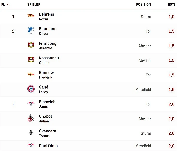 - по версии Bundesliga.com: