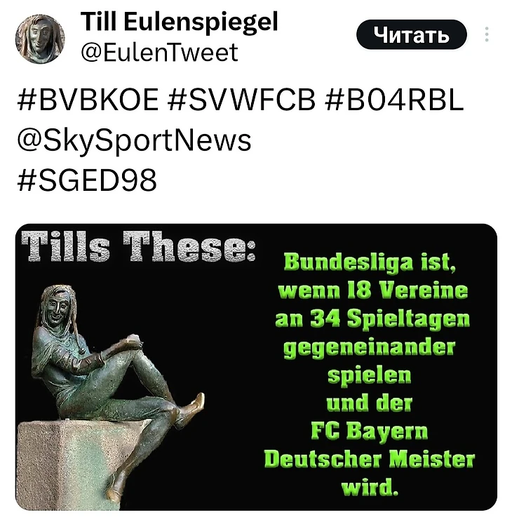 «Тезисы Тилля: Бундеслига – это когда 18 команд в 34 турах играют друг против друга и «Бавария» становится чемпионом».