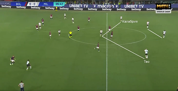 Ранее Пиоли ситуативно использовал тройку игроков в начале атаки благодаря низкой позиции Калабрии. Тео при этом получал свободу и уходил выше.