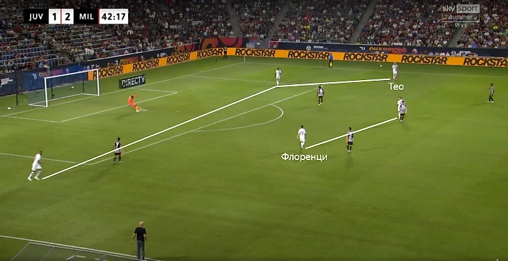 Полезность объясняется и легкостью перестроения. Против одного форварда можно оставить двух центральных защитников, а против пары быстро образуется тройка путем низкой позиции Тео или Калабрии.