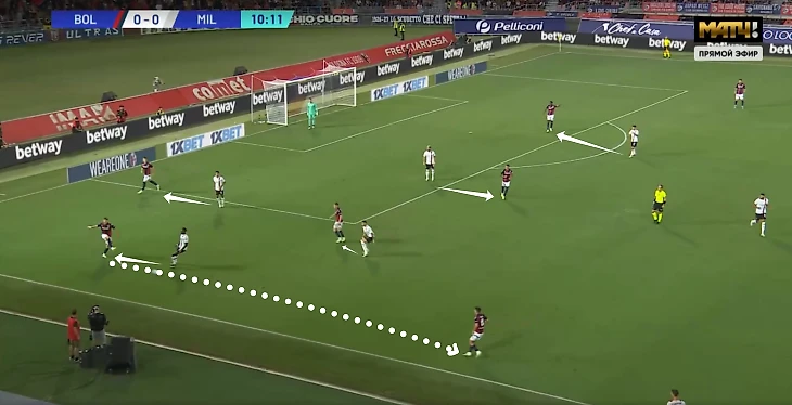 Перспективной видится структура сразу с двумя фулбеками (против «Болоньи» в Серии А в основном применялась именно она). Так Тео легче уйти выше в нужном случае, а поддерживать грамотную циркуляцию мяча вместе с Круничем выдвигается правый защитник.