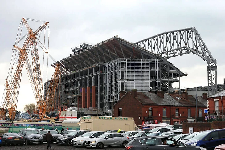 В течение прошлого сезона были вырыты фундаменты и возведены стальные конструкции прямо за существующей трибуной, а Buckingham возвращала площадку «Ливерпулю» за 24 часа до каждой домашней игры.