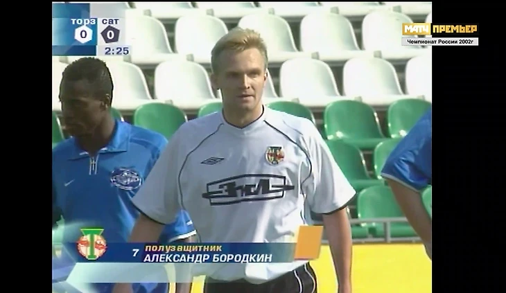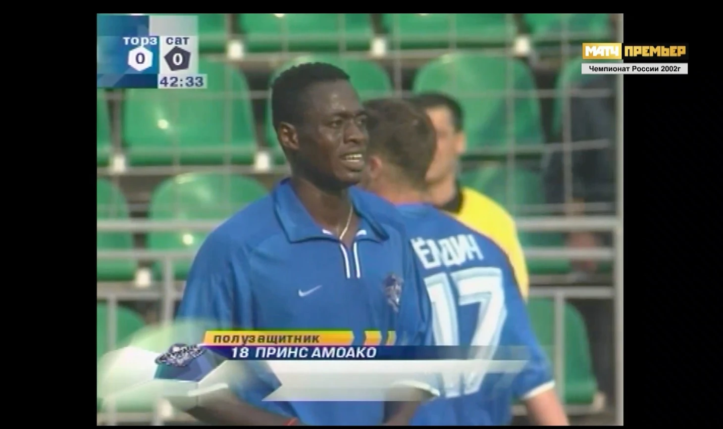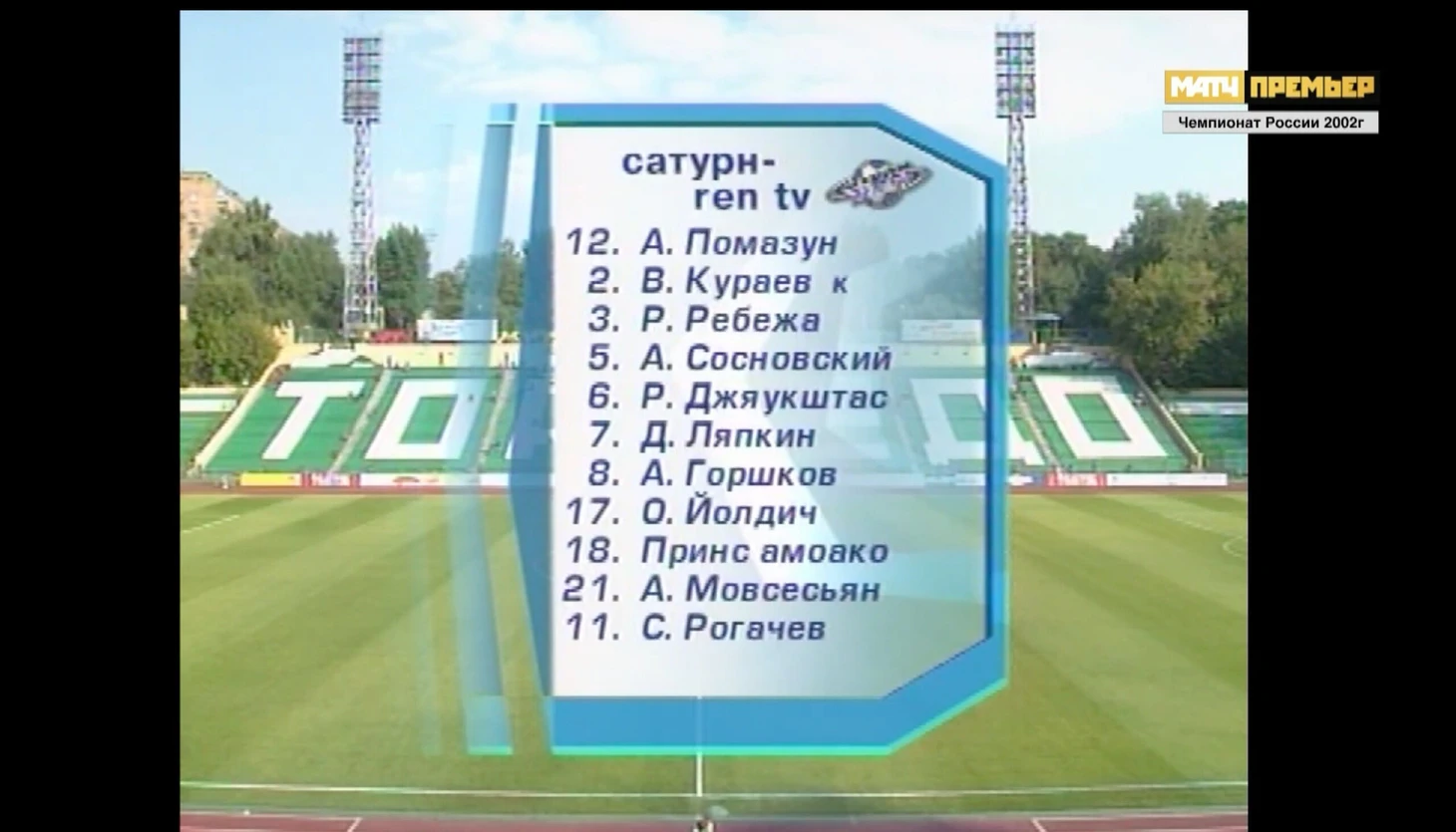 Вот так в 2002-м представляли составы. Сотрудники телевидения без должного уважения отнеслись к будущей легенде «Сатурна» Принсу Амоако.