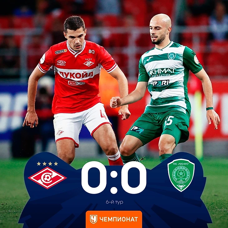У «Спартака» третий матч подряд без побед в РПЛ. В шестом туре команда Абаскаля не сумела забить «Ахмату» и сыграла дома вничью.