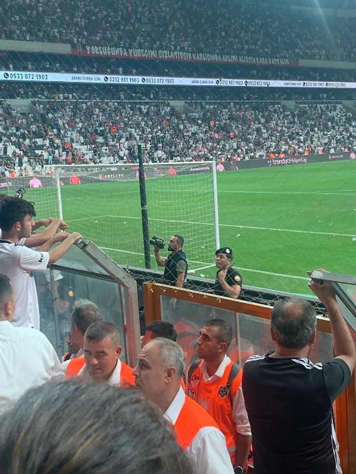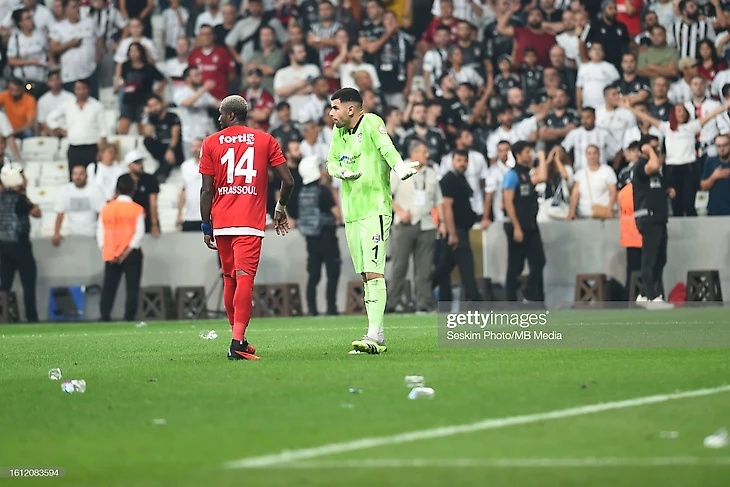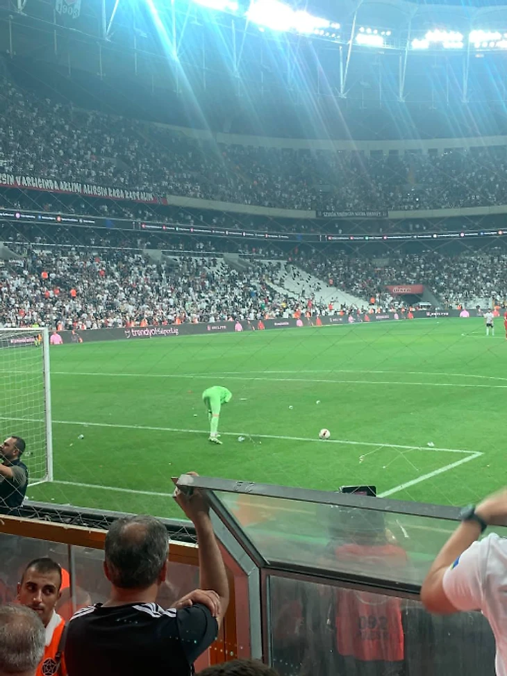 Атмосфера резко накалилась. Вратарь гостей стал тянуть время. Болельщиками Бешикташа в него полетели посторонние вещества.