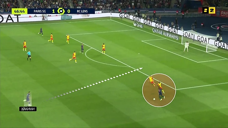 Дембеле – один из самых опасных игроков мира в изоляциях, Хакими – один из самых скоростных под оголение вот таких разрывов. У приема огромный потенциал: