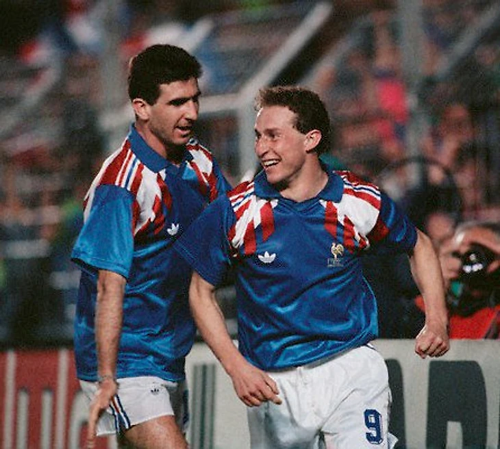 Эрик Кантона - высокий, мощный, обманчиво медлительный, но при этом очень умело обращавшийся с мячом и отлично бивший головой. Жан-Пьер Папен был меньшим по фактуре, подвижным, проворным, умным, с необычно разнообразным техническим арсеналом при реализации своих шансов перед воротами соперника. Его действия были быстры по исполнению, перемещения в штрафной соперника непредсказуемы, удары по мячу с лета исключительно зрелищны и грозны по эффективности. В 29 матчах эры Платини в качестве тренера, на счету этого дуэта 30 из 53 мячей, забитых сборной Франции (19 у Папена и 11 на счету Кантона). Мы добавим также имя и несколько выступлений Стефана Пая, который на время объеденился со своим другом и сотоварищем по молодежной сборной Франции (чемпионом Европы 1988), Кантона.