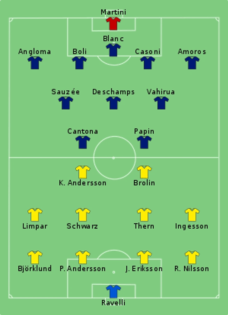 Платини, безусловно, опирался на марсельский Олимпик, который доминировал во французском футболе с 1989 по 1993. Но у французской сборной нет ни Карлоса Мозера, ни Абеди Пеле, ни Криса Уоддла, чтобы обрести полную гармонию. А её руководителю постоянно приходилось менять тактические построения из-за отсутствия возможности иметь настоящий базовый клуб. По общему признанию, во многом благодаря своим двум бомбардирам, французская сборная совершила небольшой подвиг, выграв все восемь отборочных матчей к Евро-92. Но в Швеции, на заключительном этапе, мы можем измерить её слабости и пределы, особенно когда в отчаянии Платини должен обратиться к ветерану Луису Фернандесу, чтобы попытаться навести порядок в «доме»...