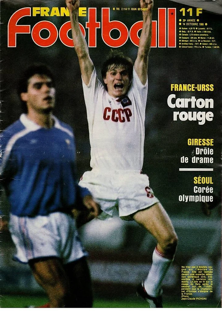 Обложка еженедельника France Football от 14 октября 1986 c отчетом о матче Франция-СССР (0-2) под названием «Красная карточка»