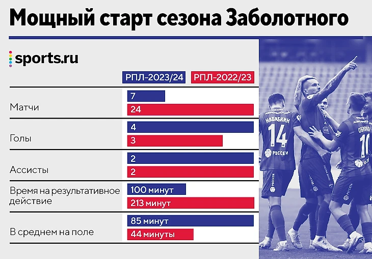 Заболотный уже забил больше, чем за весь прошлый сезон. Второй бомбардир лиги и главный форвард ЦСКА