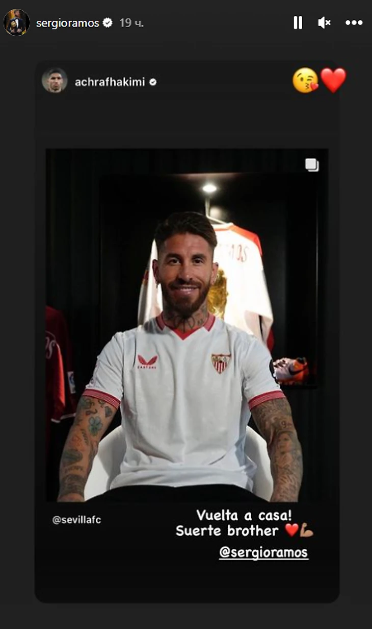 Ашраф отправил Рамосу послание на испанском: «Вернулся домой! Удачи, брат».