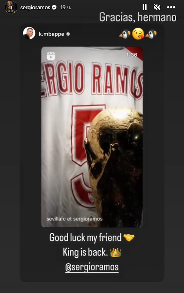 Килиан написал: «Удачи, мой друг. Король вернулся». Серхио ответил французу: «Спасибо, брат».