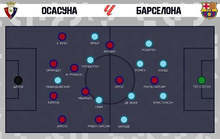 Хави же внёс только одно изменение по сравнению с последним матчем (против «Вильярреала») – Бальде вернулся после травмы. Главная неожиданность – появление Ламина Ямала в старте, несмотря на возвращение Рафиньи после дисквалификации. Относительный сюрприз – Роберто снова в старте и снова в роли правого защитника. Но альтернативные варианты были не менее экстравагантными – либо ставить Алонсо или Мартинеса (только после травмы) в центр обороны и двигать направо Кунде, либо же сразу выпускать Канселу, который пришёл только два дня назад.