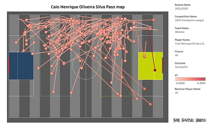 В дебютной ЛЧ левый защитник в среднем делал 39,97 передач за 90 минут с точностью 79,64%. Всего Кайо сделал 167 передач, в том числе 15 навесов, 22 длинных передачи и три проникающих.