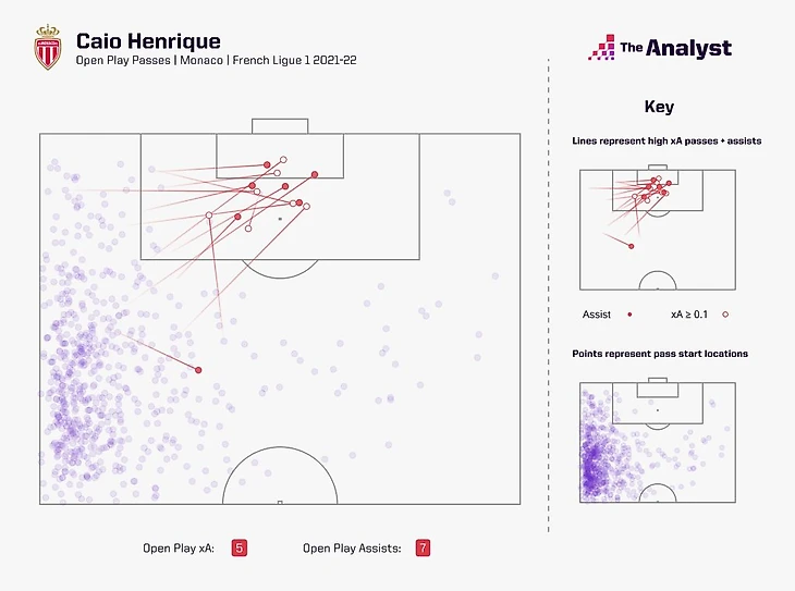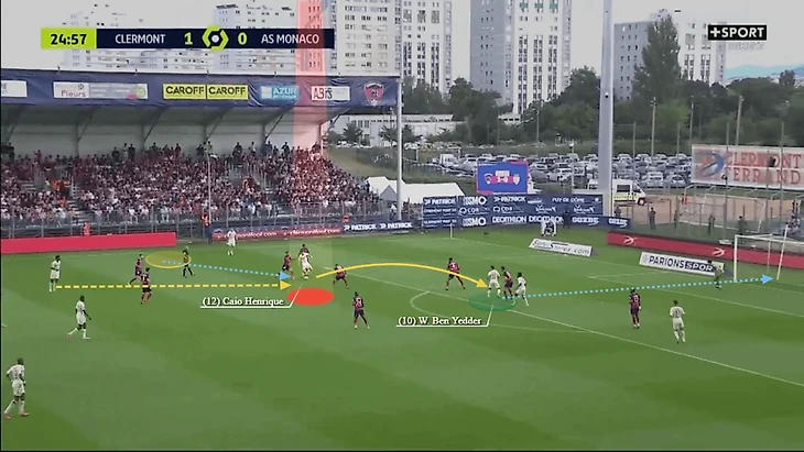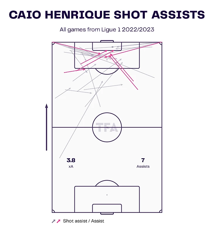 В сезоне 2021/22 Флипп Клеман столкнувшись с травмами ключевых атакующих игроков, таких как Александр Головин, Виссам Бен-Йеддер, Жеан Лукас и Крепин Диатта, решил использовать Кайо Энрике в качестве ...плеймейкера. Кайо помогли почти 10 лет лет в академии на этой позиции. Он хорошо владеет мячом, хорошо читает игру, умно двигается, имеет четкое первое касание и контроль мяча, и безусловно бельгийский тренер был доволен..