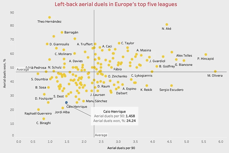 Следует признать, что в игре Энрике есть один явный недостаток, который потребует серьезной доработки, а именно его игра головой. Его рост 1,79 метра довольно высокий для крайнего защитника, но в воздушных дуэлях Кайо показывает себя ужасно.