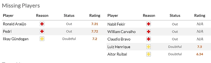 На что обратить внимание: На Лигу Чемпионов. После игр сборных она как-то очень резво подкралась и готовится заполнить собой будние вечера и инфорпространство. Сразу после Бетиса Блауграна начнет готовиться к стартовой игре против Антверпена, так что нельзя исключать что уже в ближайшем туре мы увидим ранние замены и профилактические ротации в исполнении Хави. Ну а пока хозяевам остается радоваться, что повреждение Илкая Гюндогана(8) оказалось не таким серьезным и немец готов помочь команде уже в ближайшие выходные.
