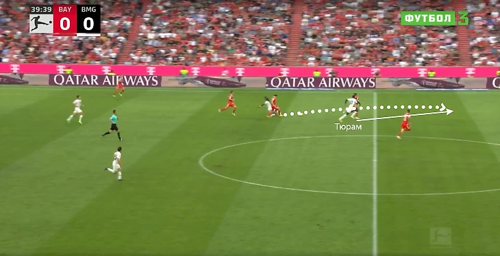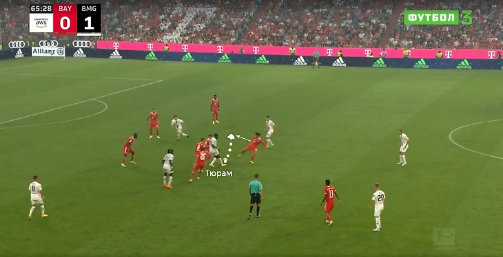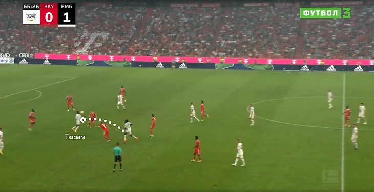 Вот один из ярких эпизодов – Коне сделал Тюраму пас на грудь в окружении нескольких игроков «Баварии».