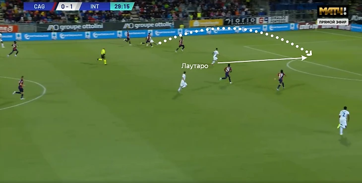 Лаутаро находился выше и остался без сопротивления благодаря выдергиванию центрального защитника.