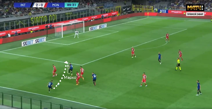 Против «Монцы» он оказался левее и создал фланговый треугольник вместе с Бареллой и Аугусто. Во время приема Николо Марко резко ускорился в штрафную и отклеился от Пабло Мари (не успел принять мяч, но эпизод вышел показательным).