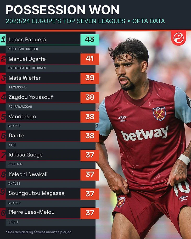 Игрок, совершивший больше всех отборов в начавшемся сезоне АПЛ это Пакета. Человек, выигравший больше всего единоборств в лигах Европы тоже Лукас.
