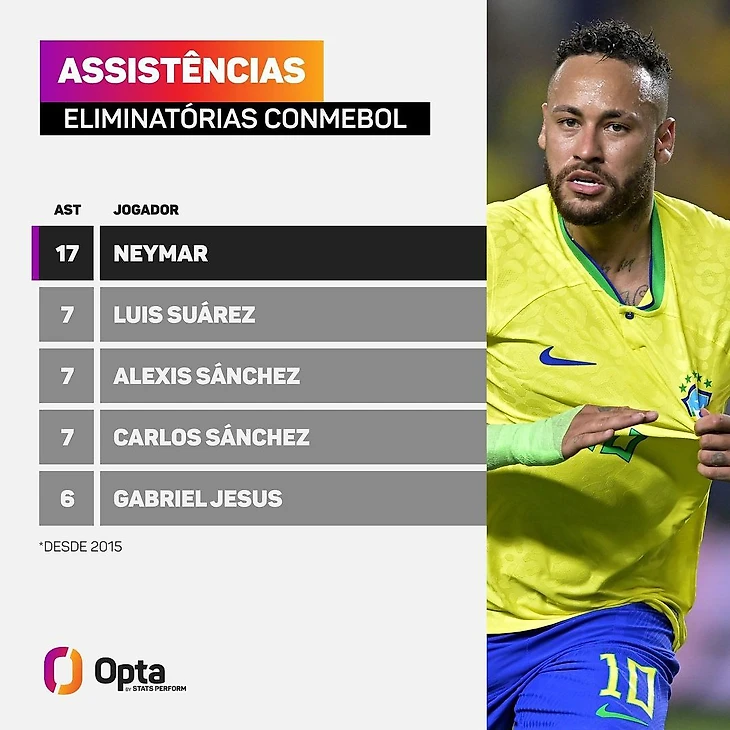 При том,что с момента своего дебюта в отборочных матчах на ЧМ в ноябре 2015 именно Неймар самый результативный игрок континента. Он же и лучший ассистент.