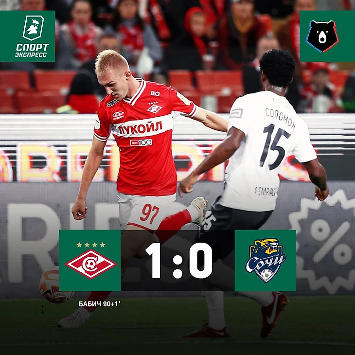 Бабич дал Абаскалю передышку. «Спартак» вырвал победу у «Сочи» и прервал кошмарную серию