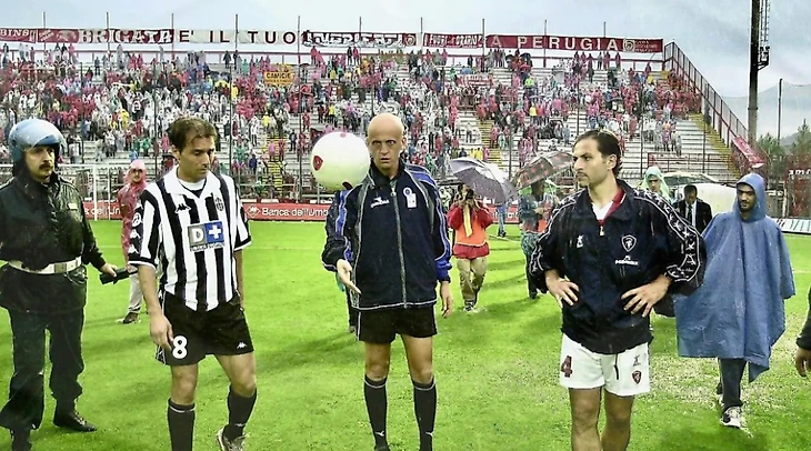 В Перудже же в этот день властвовала стихия. На город обрушился страшный ливень, который превратил улицы и проулки в каналы, схожие с венецианскими. О футбольном поле и говорить не приходилось - вместо газона на стадионе было капитальное болото, в котором вяз не только мяч, но и бутсы.
