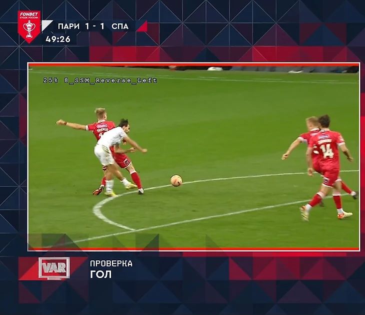 Начало второго тайма выдалось бурным на события. Сначала после паса Пруцева опасно пробил Мелёшин — рядом со штангой. А затем хозяева провели стремительный контрвыпад, завершившийся взятием ворот Максименко. Однако ВАР восстановил справедливость: гол был отменен, поскольку Севикян в этой атаке явно ударил сзади по ноге Умярова.