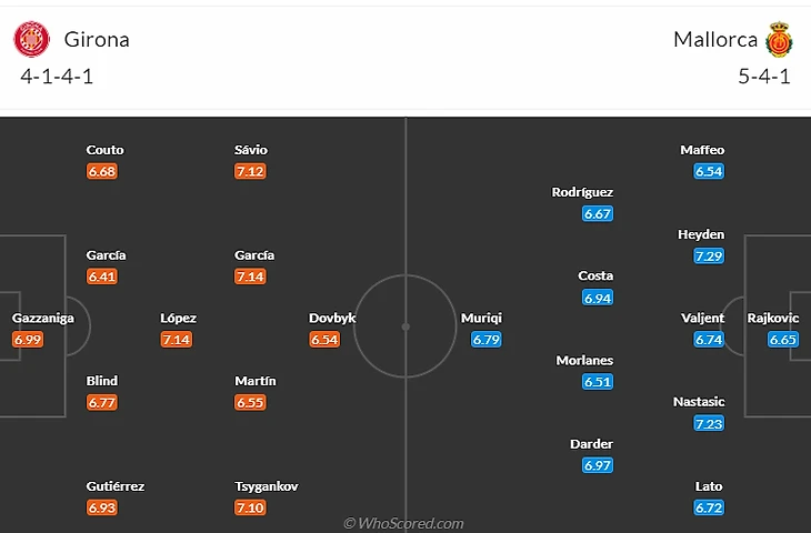 На что обратить внимание: На Арнау Мартинеса(6). Правый латераль Жироны на днях вернулся в общую группу и вполне может появиться на поле уже завтра. А вот у гостей с Балеарских островов по прежнему в лазарете отдыхает основной защитник Копете(5,5)