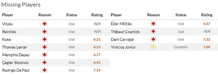 На что обратить внимание: На Винисиуса Жуниора(10). Бразилец как мог старался ускорить свое восстановление и поспеть к дерби, но вероятнее всего вингера поберегут в матче против индейцев и возможно предоставят какие-то минуты в мидуичной игре с Лас-Пальмасом.