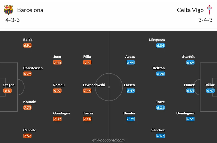 Кого брать: Хозяев. Барса набрала ход и против пока не очень внятной Сельты смотрится явным фаворитом. Тратьте бюджет на Левандовски(10) с Ферраном Торресом(8) или на Тер Стегена(6,5) с Кунде(6,5).